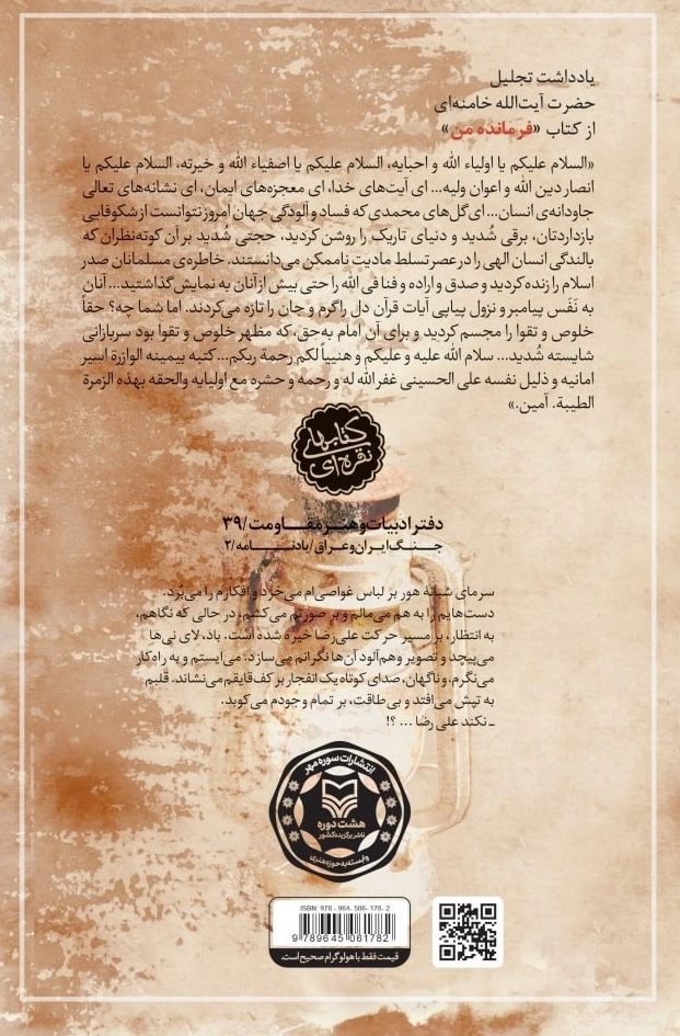 بسم الله الرحمن الرحیم السلام علیکم یا اولیاء الله و احبّائه، السلام علیکم یا اصفیاء الله و خیرته، السلام علیکم یا انصار دین الله و اعوان ولیه.. ای آیتهای خدا،ای معجزههای ایمان، ای نشانههای تعالی جاودانهی انسان .. ای گلهای محمّدی که فساد و آلودگی جهان امروز نتوانست از شکوفائی بازداردتان، برقی شدید و دنیای تاریک را روشن کردید، حجّتی شدید بر آن کوته نظران که بالندگی انسان الهی را در عصر تسلّط مادیّت ناممکن میدانستند. خاطرهی مسلمانان صدر اسلام را زنده کردید و صدق و اراده و فناء فیالله را حتی بیش از آنان به نمایش گذاشتید.. آنان به نفس پیامبر و نزول پیاپی آیات قرآن دل را گرم و جان را تازه میکردند اما شما چه؟!! حقاً خلوص و تقوا را مجسّم کردید و برای آن امام بحق که مظهر خلوص و تقوا بود سربازانی شایسته شدید.. سلام الله علیه و علیکم و هنیئاً لکم رحمة ربکّم .. کتبه بیمناه الوازرة اسیر امانیه و ذلیل نفسه علی الحسینی غفر الله له و رحمه و حشره مع اولیائه و الحقه بهذه الزمرة الطیبة. آمین. این کتاب در 13 رجب 1411 با چشمی لبریز اشک شوق و حسرت زیارت شد.