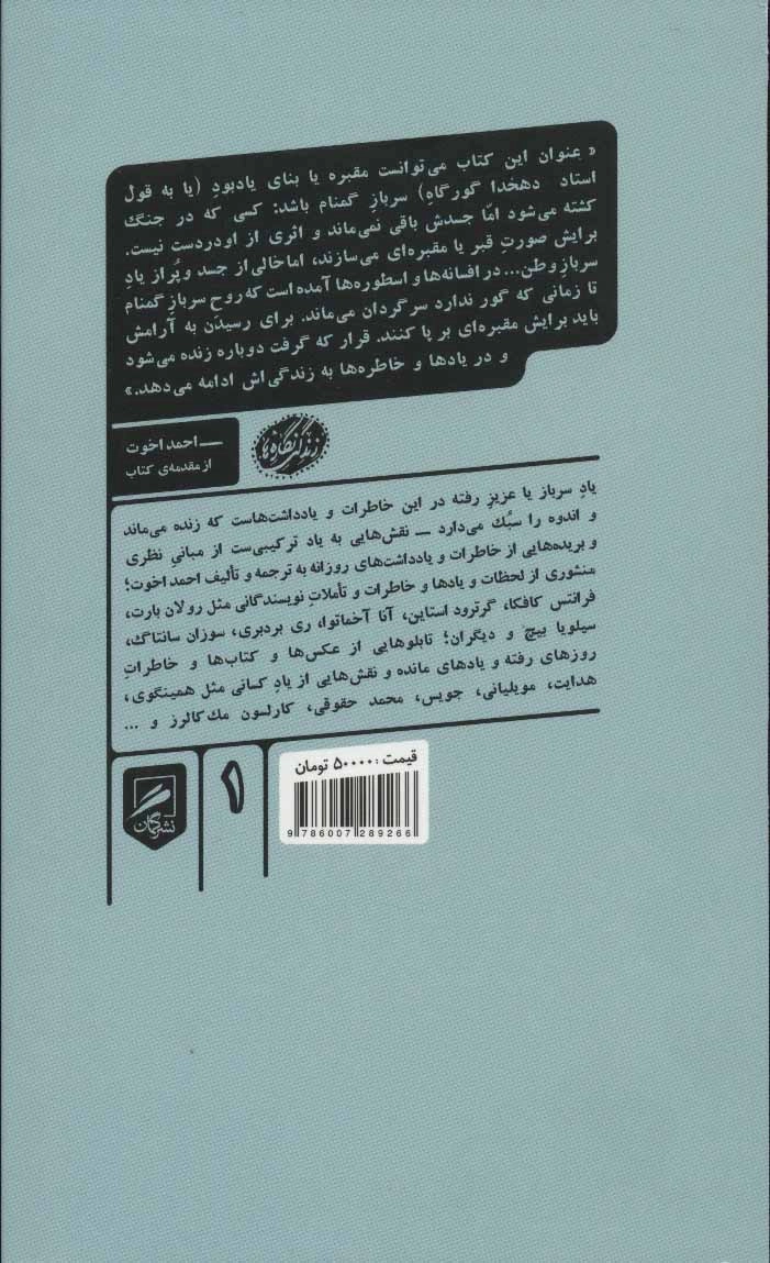 کتاب پیش رو اثریست از احمد اخوت که توسط انتشارات گمان منتشر شده است. این کتاب در حقیقت اثری است در باب ادبیات خاطره نویسی که بخشی از آن حاصل قلم گردانی احمد اخوت و بخشی دیگر نتیجه انتخاب ها و ترجمه او از آثار درخشان جهانی در زمینه خاطره نویسی است که با دقتی خاص برای نشان دادن انواع خاطره نویسی گزیده شده و در اختیار مخاطب قرار گرفته اند. این آثار در چند بخش طبقه بندی شده تحت عناوین مبانی نظری، خاطره سخن بگو، خاطرات کتابی، یادداشت نویسی، عکس و خاطره و بررسی کتاب جای داده شده اند.