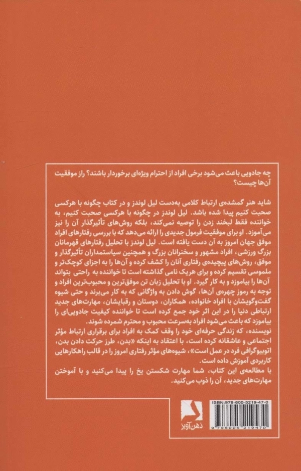یکی از مهمترین جنبههای برقراری ارتباط ، توانایی سخن گفتن و صحبت کردن با افراد مختلف است . از محل زندگی تا محل کار ، شرکای تجاری و... چیزی که اهمیت دارد نحوهی صحبت با افراد مختلف و همسو کردن آنها با خود برای رسیدن به موفقیت است. نویسنده در این کتاب راهکارهایی را برای موفقیت در روابط ارائه کرده است.