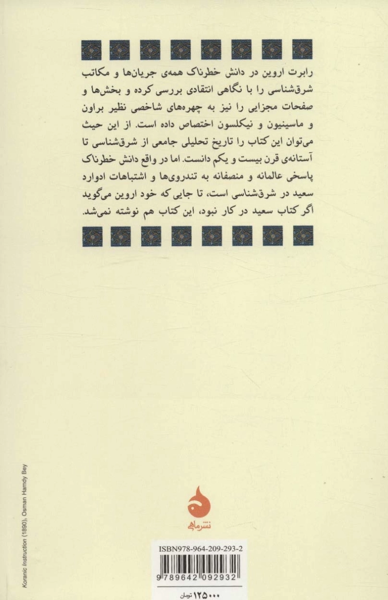 کتاب «دانش خطرناک؛ شرقشناسی و مصائب آن» نوشته رابرت اروین، یکی از ماندگارترین آثار نقد و بررسی دانش شرقشناسی است که بهطور ویژه پاسخی منصفانه به کتاب مشهور ادوارد سعید با نام «شرقشناسی» ارائه میدهد. کتاب «دانش خطرناک» به عنوان یک منبع تاریخی و تحلیلی درباره شرقشناسی شناخته میشود که با دقت و انصاف، نقدهایی را بر اندیشههای غالب نقد شرقشناسی در دوران معاصر مطرح کرده است و جایگاه ویژهای در ادبیات مطالعه شرق و نقدهای آکادمیک آن دارد.