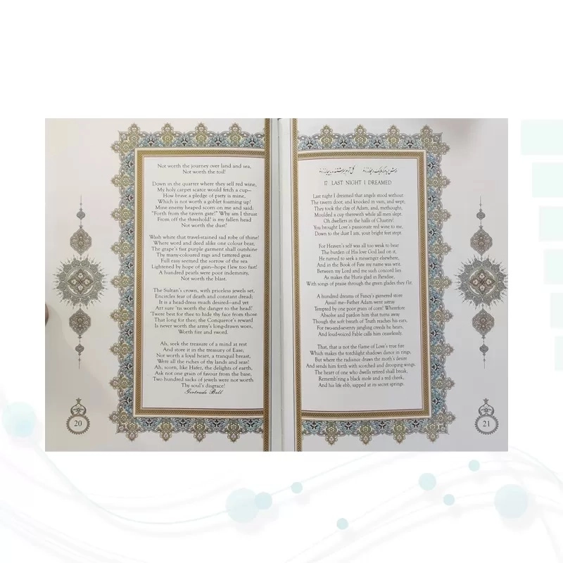 کتاب "دیوان حافظ" یکی از آثار برجسته و بینظیر ادبیات فارسی است که به قلم شاعر بزرگ و نامدار ایرانی، شمس الدین محمد حافظ شیرازی، نوشته شده و به عنوان یکی از مهمترین و تأثیرگذارترین مجموعههای شعر در تاریخ ادبیات ایران شناخته میشود. این دیوان شامل غزلیات، اشعار عاشقانه، عرفانی و اجتماعی است که با زبان زیبا و دلنشین، احساسات عمیق انسانی، عشق، عرفان و جستجوی حقیقت را به تصویر میکشد. حافظ با استفاده از زبان رمزآلود و استعارههای غنی، به بیان مفاهیم عمیق فلسفی و اجتماعی پرداخته و در عین حال، زیباییهای زندگی و عشق را نیز به تصویر میکشد.