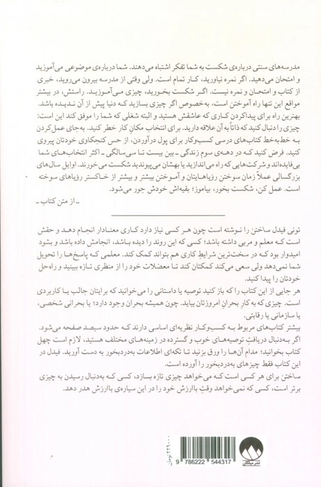 کتاب ساختن: راهنمایی نامعمول برای ساختن چیزهایی که ارزش ساخته شدن دارند نوشته تونی فادل، راهنمایی جامع و بینظیر برای کسانی است که میخواهند در مسیر شغلی خود موفق شوند. این کتاب از تجربیات فادل در زمینه کارآفرینی و نوآوری بهره میبرد و به شما میآموزد که چگونه ایدههای خود را به کسبوکارهایی موفق تبدیل کنید. فادل با اشتراکگذاری داستان زندگیاش و چالشهایی که طی سالها تجربه کرده، به شما نشان میدهد که موفقیت تنها به امکانات و منابع اولیه بستگی ندارد، بلکه به درک درست از بازار، شجاعت و تلاش مداوم وابسته است.