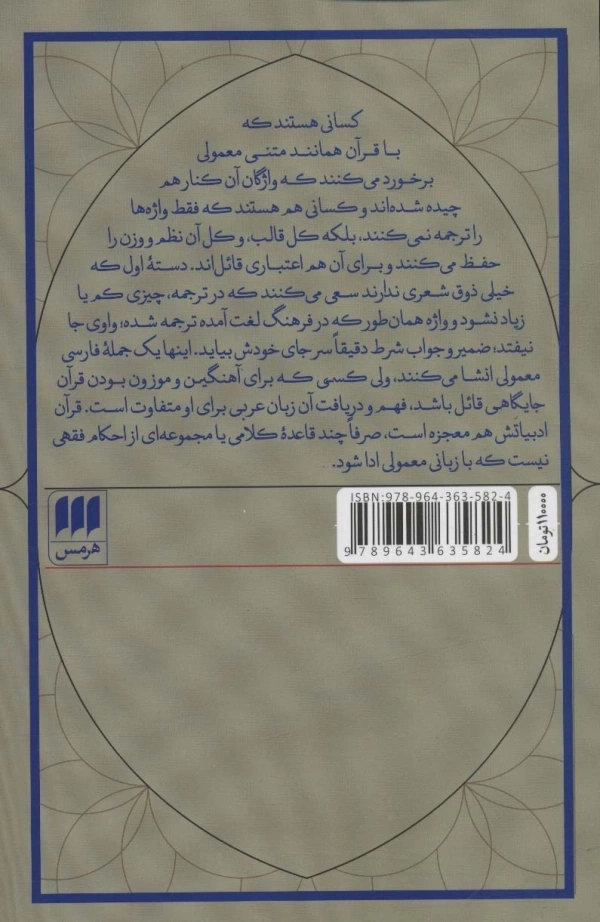 مسئله ی ترجمه ی قرآن به زبان فارسی و زبان های دیگر ، با توجه به مشخصه های منحصر به فرد قرآن و اختلاف نظرهای میان مفسران و اصحاب دین و زبان ، همواره محل بحث و جدال های بسیار بوده است . این کتاب مجموعه ی شانزده مقاله ، نقد ، کتابشناسی و گفت وگوست که «مرتضی کریمی نیا» قرآن پژوه بزرگ معاصر در سال های مختلف نوشته است . گفت وگوهای این کتاب پیرامون ترجمه ی قرآن به زبان فارسی و انگلیسی شکل گرفته اند و سعی شده بسیاری از پرسش های حول و حوش موضوع ترجمه ی قرآن را با بیان مصداق های دقیق و قابل استناد ، پوشش دهند.