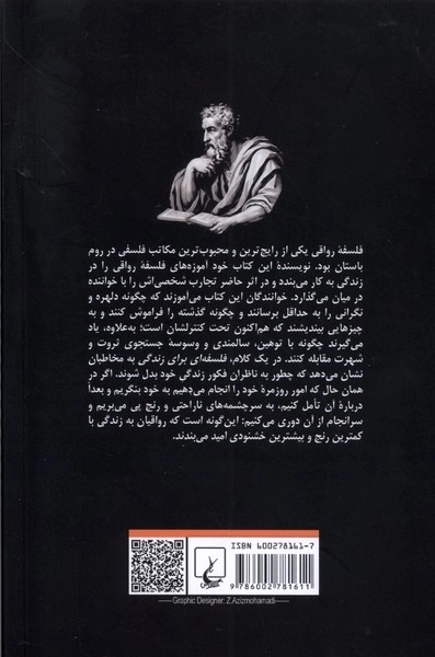 کتاب فلسفه ای برای زندگی در معرفی پشت جلد این کتاب، آمده است: «فلسفه رواقی یکی از رایجترین و مردمیترین مکاتب فلسفی در روم باستان بود. نویسنده این کتاب، خود، آموزههای فلسفه رواقی را در زندگی به کار میبندد و در اثر حاضر تجارب شخصیاش را با خواننده در میان میگذارد. خوانندگان این کتاب میآموزند که چگونه دلهره و نگرانی را به حداقل برسانند و چگونه گذشته را فراموش کنند و به چیزهایی بیندیشند که هماکنون تحت کنترلشان است؛ بهعلاوه یاد میگیرند چگونه با توهین، سالمندی و وسوسه جستوجوی ثروت و شهرت مقابله کنند. در یک کلام، فلسفهای برای زندگی به مخاطبان نشان میدهد که چطور به ناظران فکور زندگی خود بدل شوند. اگر در همان حال که امور روزمره خود را انجام میدهیم به خود بنگریم و بعداً درباره آن تأمل کنیم، به سرچشمههای ناراحتی و رنج پی میبریم و سرانجام از آن دوری میکنیم: اینگونه است که رواقیان به زندگانی با کمترین رنج و بیشترین خشنودی امید میبندند.»